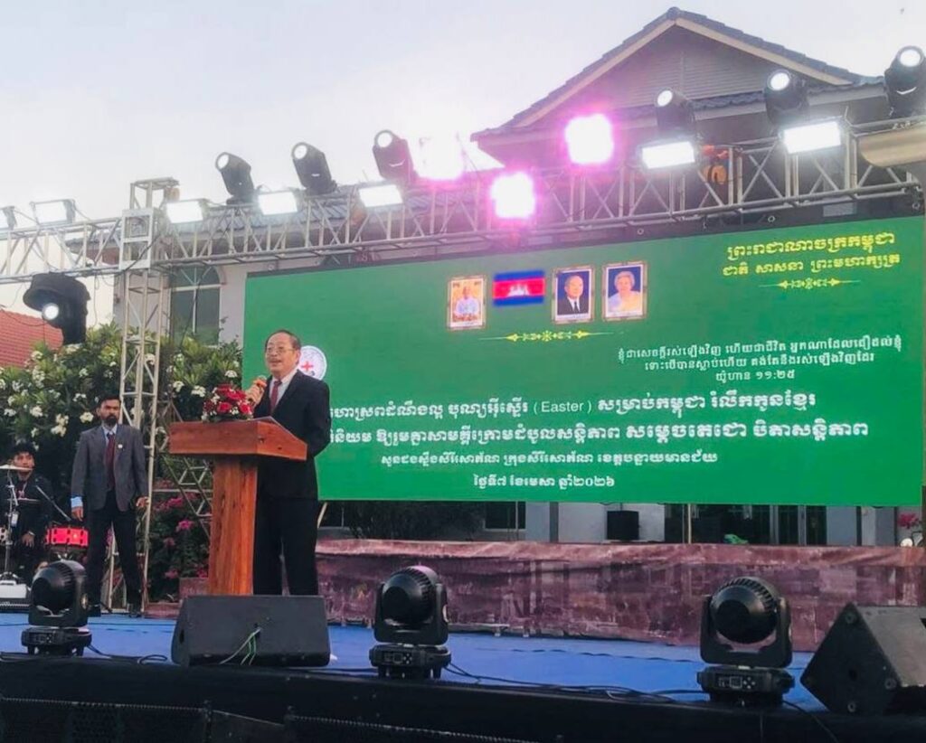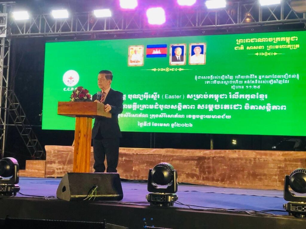 បន្ទាយមានជ័យ៖ អង្គការសហគមន៍គ្រីស្ទបរិស័ទគណៈនិកាយប្រូតេស្តង់កម្ពុជា បានរៀបចំមហោស្រពដំណឹងល្អ បុណ្យអ៊ីស្ទើរ (Easter) សម្រាប់កម្ពុជា ដើម្បីរំលឹកកូនខ្មែរ អ្នកជាតិនិយម ឱ្យសាមគ្គីគ្នារស់ក្រោមដំបូលម្លប់សន្តិភាព សម្ដេចតេជោ បិតាសន្តិភាព ដែលមានមនុស្សចំនួន៥០០នាក់ចូលរួម នៅទីរួមខេត្តបន្ទាយមានជ័យ នារាត្រីថ្ងៃអង្គារ ទី០៧ ខែមេសា ឆ្នាំ២០២៦ ក្រោមអធិបតីភាពដ៏ខ្ពង់ខ្ពស់ ឯកឧត្តម អ៊ុង ទី ទីប្រឹក្សាផ្ទាល់សម្ដេចមហាបវរធិបតី ហ៊ុន ម៉ាណែត នាយករដ្ឋមន្ត្រីនៃព្រះរាជាណាចក្រកម្ពុជា និងជាប្រធានអង្គការសហគមន៍គ្រីស្ទបរិស័ទគណៈនិកាយប្រូតេស្តង់កម្ពុជា លោកគ្រូគង្វាល តាំង វេកហួង គ្រូគង្វាលនៃព្រះវិហារជីវិតថ្មីភ្នំពេញ និងអ្នកគ្រូ តាំង សាមឿន លោកគ្រូគង្វាលខ្មែរ គ្រូគង្វាល-បេសកជនកូរ៉េ និងតំណាងសាខាអង្គការ ស.គ.ប.ក ខេត្ត ក្រុង/ស្រុក ទាំង២៥ រាជធានី/ខេត្ត ព្រមទាំងគ្រីស្ទបរិស័ទ និងពលរដ្ឋខ្មែរមកពីតំបន់ផ្សេងៗក្នុងខេត្តបន្ទាយមានជ័យ។